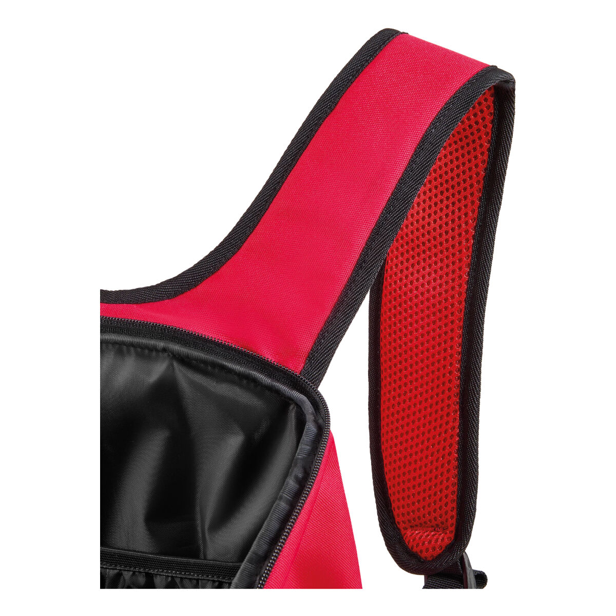 - Dolgu destekli arka panel ve hava geçirgen mesh omuz askıları
