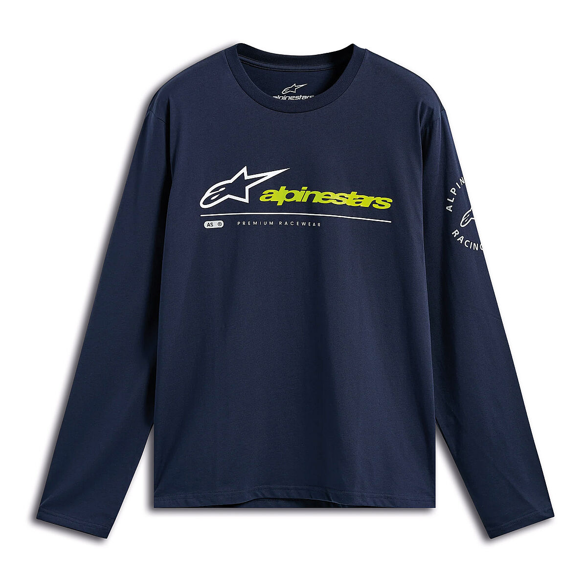 Ön kısımda Astars logo ve Alpinestars yazı logosu, kolda Astars daire logo baskısı