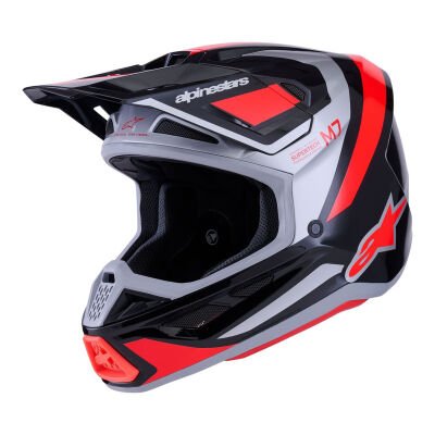 SM7 Kask, arazi için tasarlanmış olup, hafif bir kaskta üstün havalandırma ve konforun mükemmel birleşimini sunacak şekilde optimize edilmiştir. Son derece aerodinamik kompozit kabuğu, olağanüstü darbe koruması sağlar. Alpinestars patentli A-Head Fitment ve Vizör Ayırma Sistemlerinin yanı sıra, SM7 kaskın alt kenar tarafında yenilikçi PLASMA teknolojisi ile donatılmıştır; bu teknoloji, köprücük kemiği bölgesi ile temas durumunda optimum enerji dağılımı sağlar.