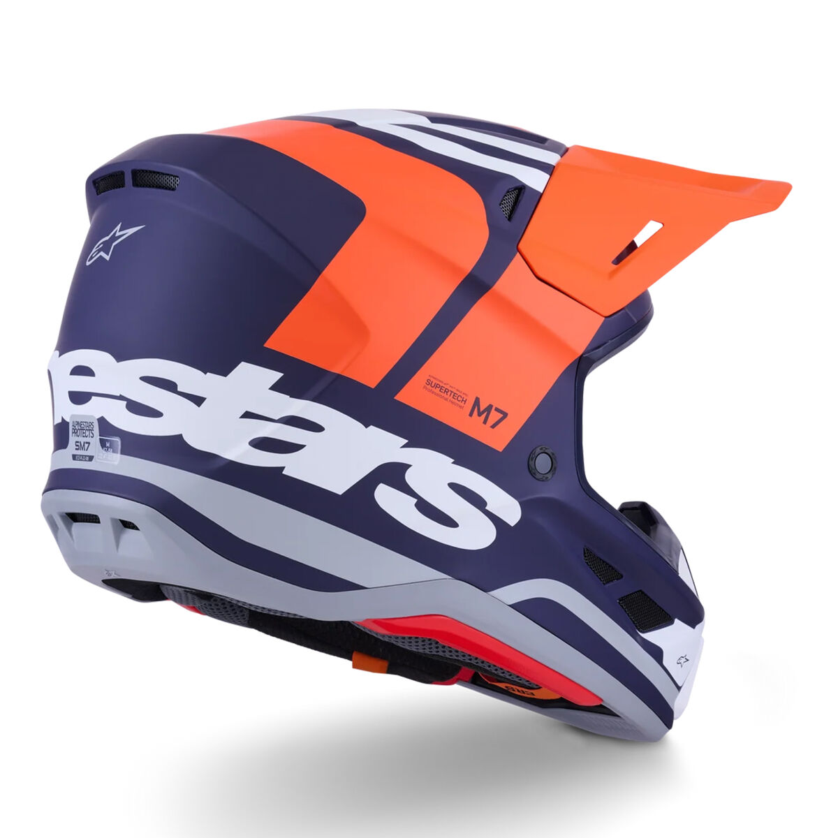 SM7 Kask, arazi için tasarlanmış olup, hafif bir kaskta üstün havalandırma ve konforun mükemmel birleşimini sunacak şekilde optimize edilmiştir. Son derece aerodinamik kompozit kabuğu, olağanüstü darbe koruması sağlar. Alpinestars patentli A-Head Fitment ve Vizör Ayırma Sistemlerinin yanı sıra, SM7 kaskın alt kenar tarafında yenilikçi PLASMA teknolojisi ile donatılmıştır; bu teknoloji, köprücük kemiği bölgesi ile temas durumunda optimum enerji dağılımı sağlar.