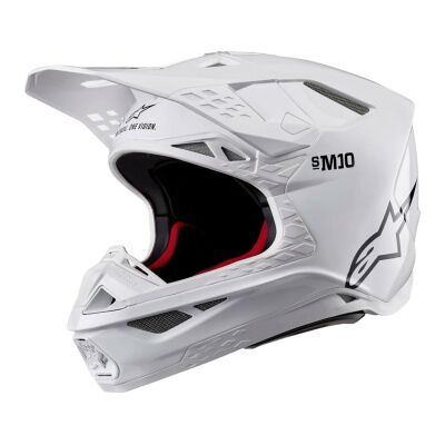 Alpinestars Supertech Kask ailesinin hedefi, dünya çapındaki sürücüler için en gelişmiş, korumalı ve yüksek performanslı kaskları üretmekti. Alpinestars'ın kask geliştirme ekibi, S-M10 ile kaskı, diğer alanlardan ödün vermeden mümkün olan en hafif ağırlığa sahip bir kask oluşturmak için üstün havalandırma ve eşsiz konforun mükemmel karışımını sağlayacak şekilde tasarladı. S-M10 tasarımı, akıcı, çekici, aerodinamik bir profil sunar ve bir darbe durumunda stres noktası görevi görebilecek veya kask tasarımının genel bütünlüğünü tehlikeye atabilecek dış profiller ve özellikler içermez. Yüzey kıvrımı çarpma anında daha az sürtünmeyi teşvik ederek sürücünün kafasını, boyun ve omurga üzerindeki doğrudan kuvvetten korumak için sapmaya ve en verimli enerji aktarımına izin verir.
