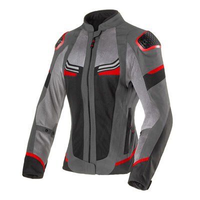 Gelince Haber VerClover Airjet-6 Korumalı Yazlık Kadın Motosiklet Montu Koyu Gri / Siyah / Kırmızı