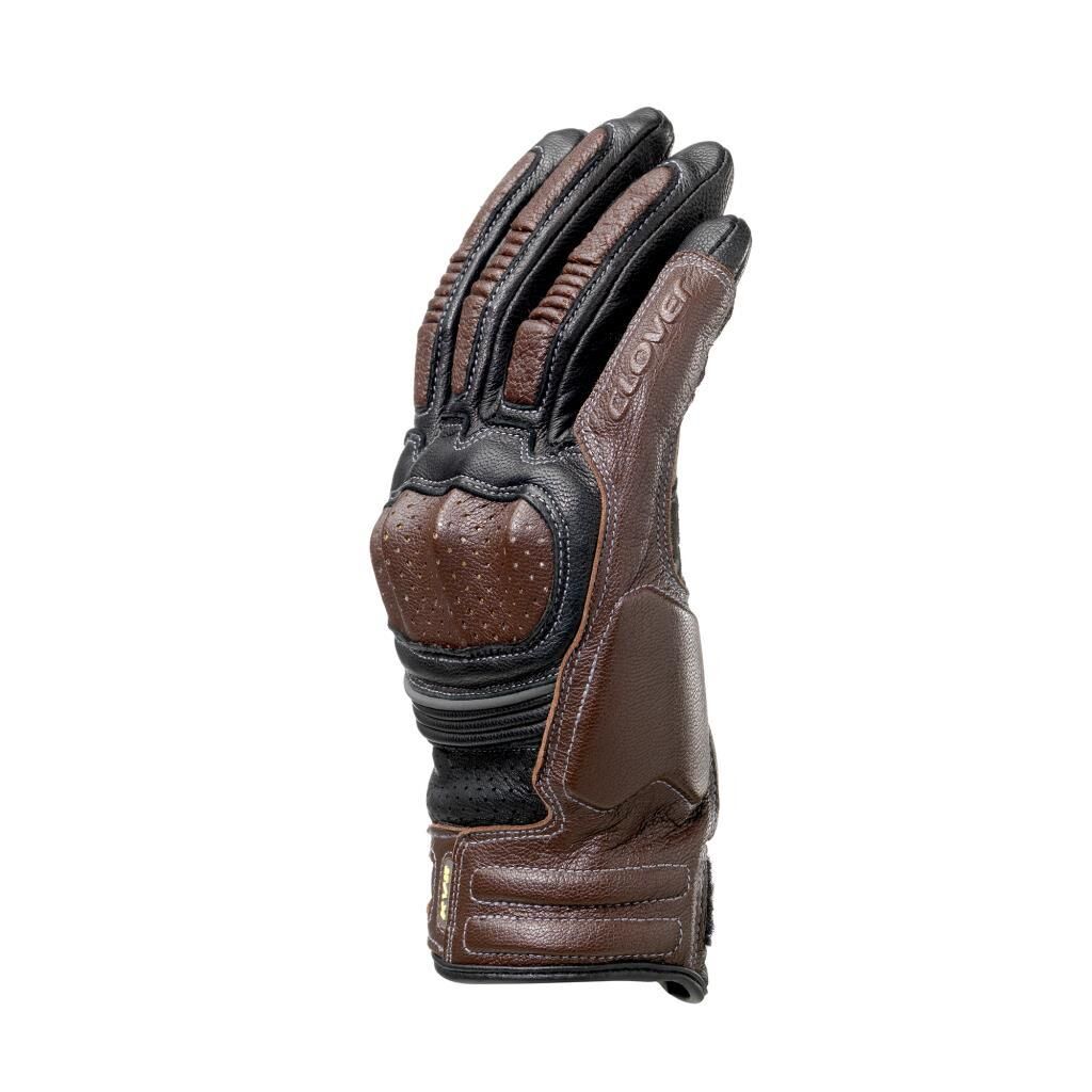 Clover KVS Korumalı Deri Motosiklet Eldiveni Kahverengi