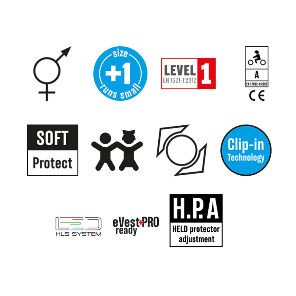 - EN 17092 motosikletçiler için korumalı giysi standardına göre sertifikalı