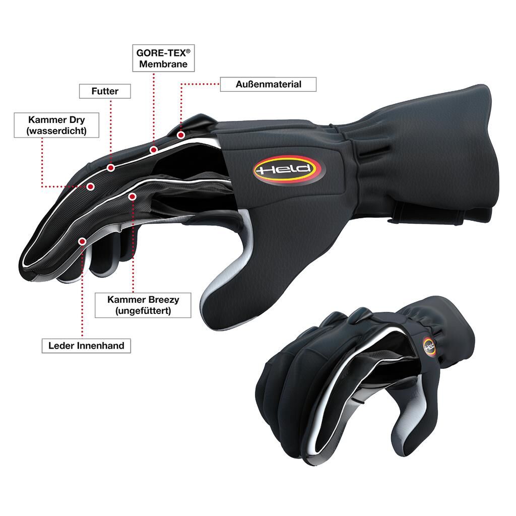 Held Air N Dry GORE-TEX Korumalı Motosiklet Eldiveni Siyah / Gri