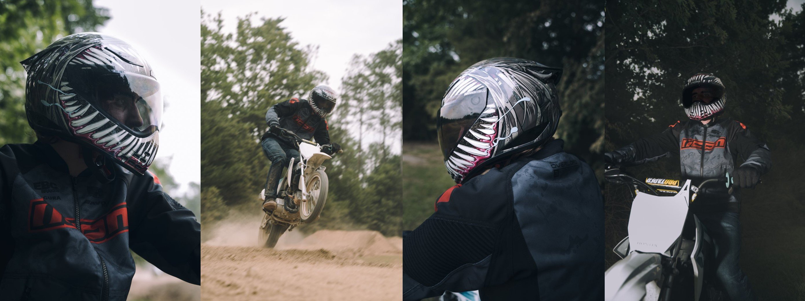 Icon Domain Grand Maw Kapalı Motosiklet Kaskı Gri / Siyah