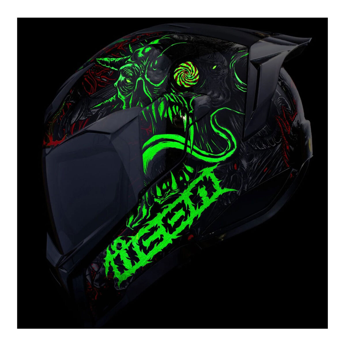 Kask yüzeyindeki belirli detaylar karanlıkta parlar.