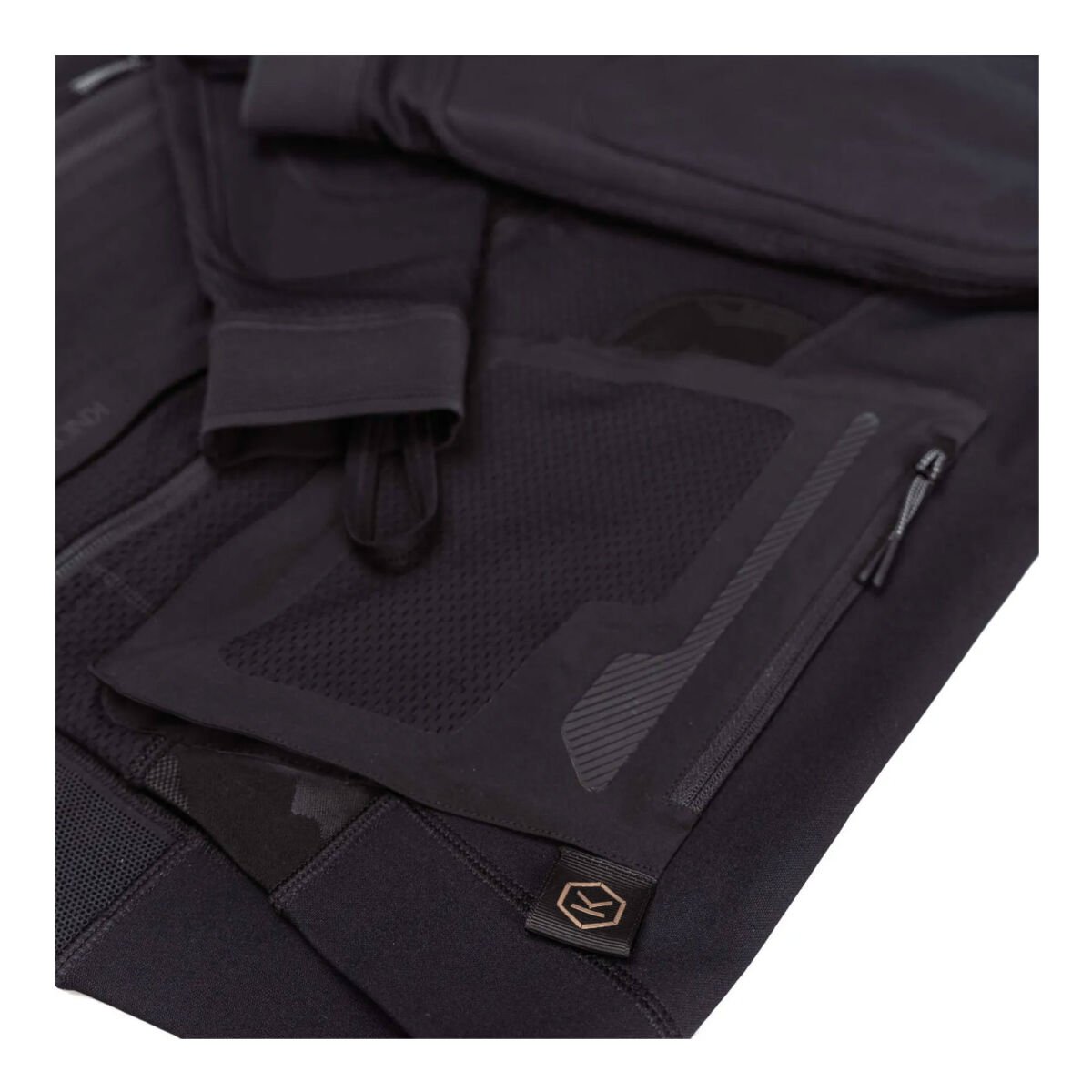 Göğüste kaynaklı fermuarlı bir cep ve iki yan körüklü fermuarlı cep, önceki Action Pro modellerine göre daha fazla saklama alanı sağlar; bu sayede sürücü her türlü maceraya hazır olur. Dört yönlü esnekliği sayesinde sürücüye tam hareket özgürlüğü sağlar. Göğüs, sırt ve kol altındaki esnek file panelleri özellikle yerleştirilerek sürücünün serin kalması sağlanır. Üründeki kaliteli markalama, karanlıkta parlak şekilde yansıyan gizli reflektif detaylarla devam eder. Sırt etek kısmında elastik file kumaşın içinde gizli bir Knox logosu yer alır. Elastik file bileklerde ayrıca başparmak halkaları bulunur, bu da ekstra güvenlik sağlar.