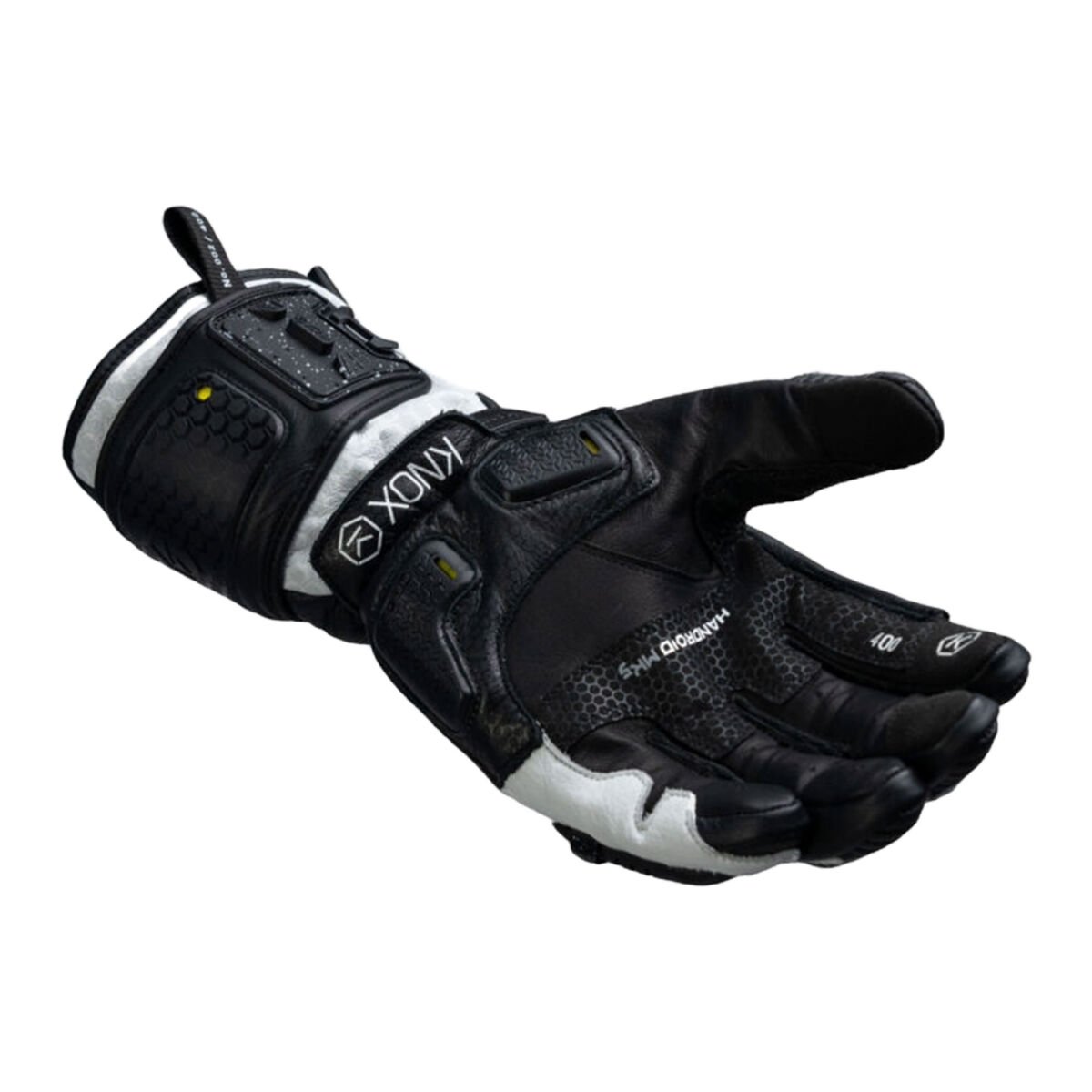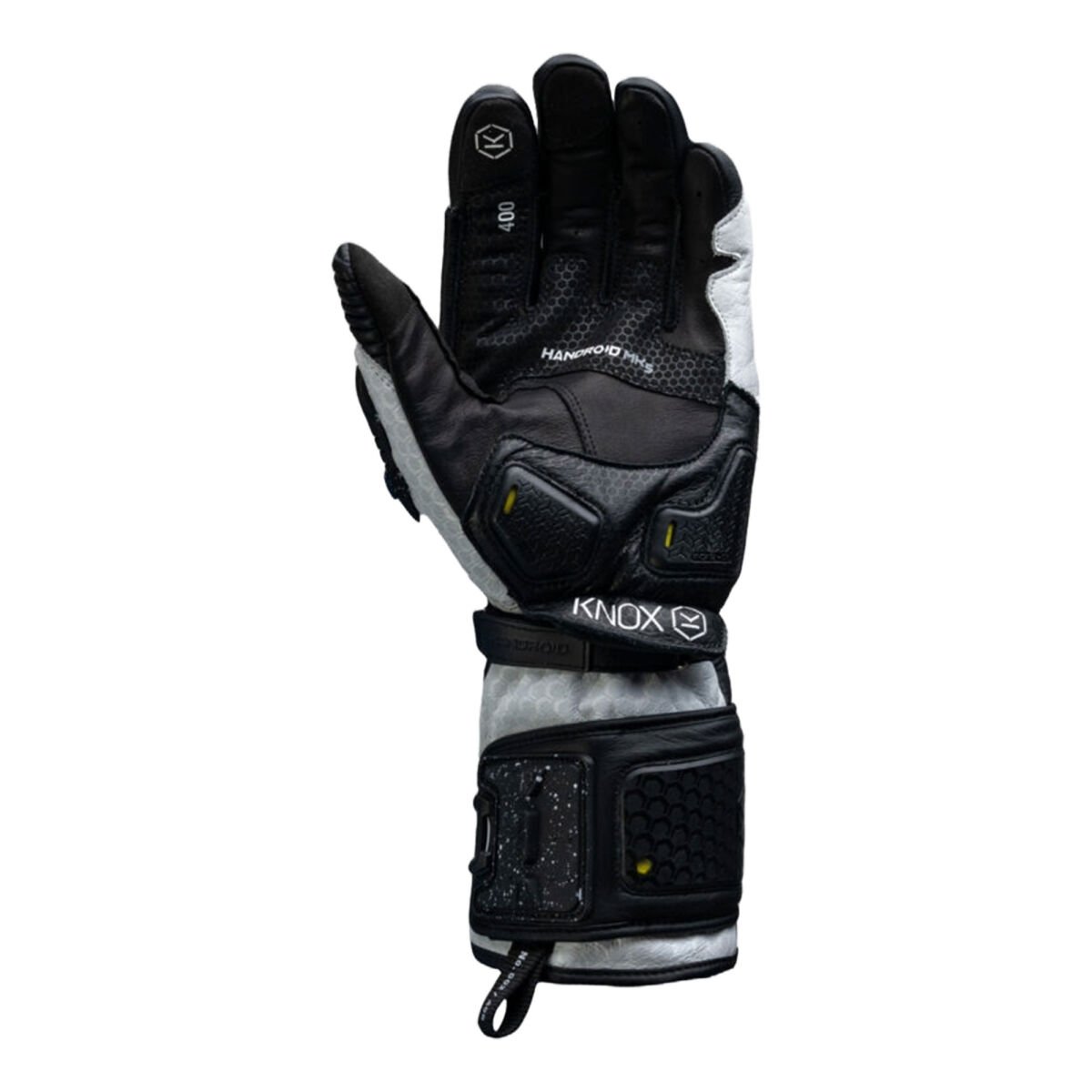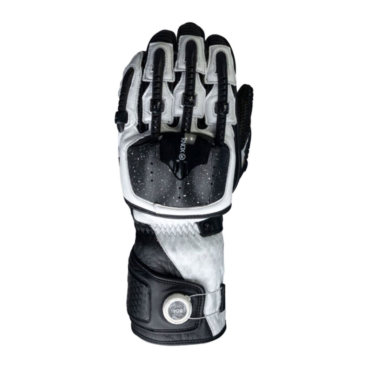Yeni BOA bilek kapatma sistemi, Knox markasına özel patentli bir tasarımdır ve sürücülerin mikro ayarlanabilir BOA kadranı ile uyumu ayarlamasına olanak tanır. Knox Skafoid Koruma Sistemi (SPS), daha fazla darbe emilimi için Mikro Kilit içerir ve maksimum koruma için elin kenarlarını kaplar. Avuç içi, olağanüstü güç ve his sunan, etik kaynaklardan elde edilen 0,8 mm kanguru derisinden yapılmıştır. Eldivenin geri kalanı tambur boyalı dana derisinden yapılmıştır.