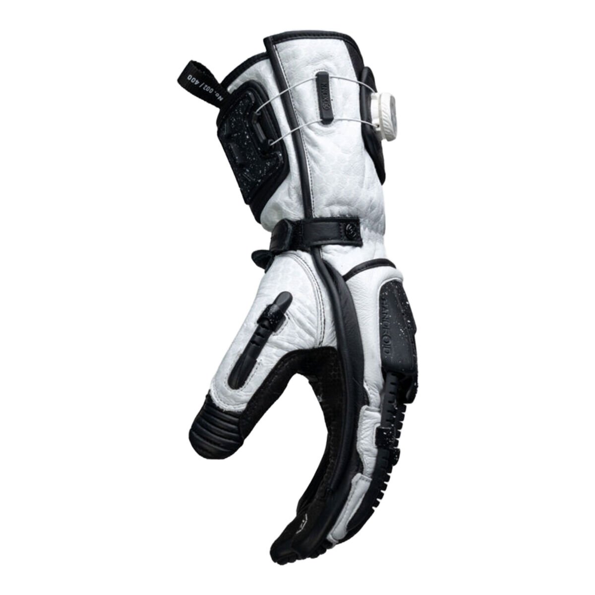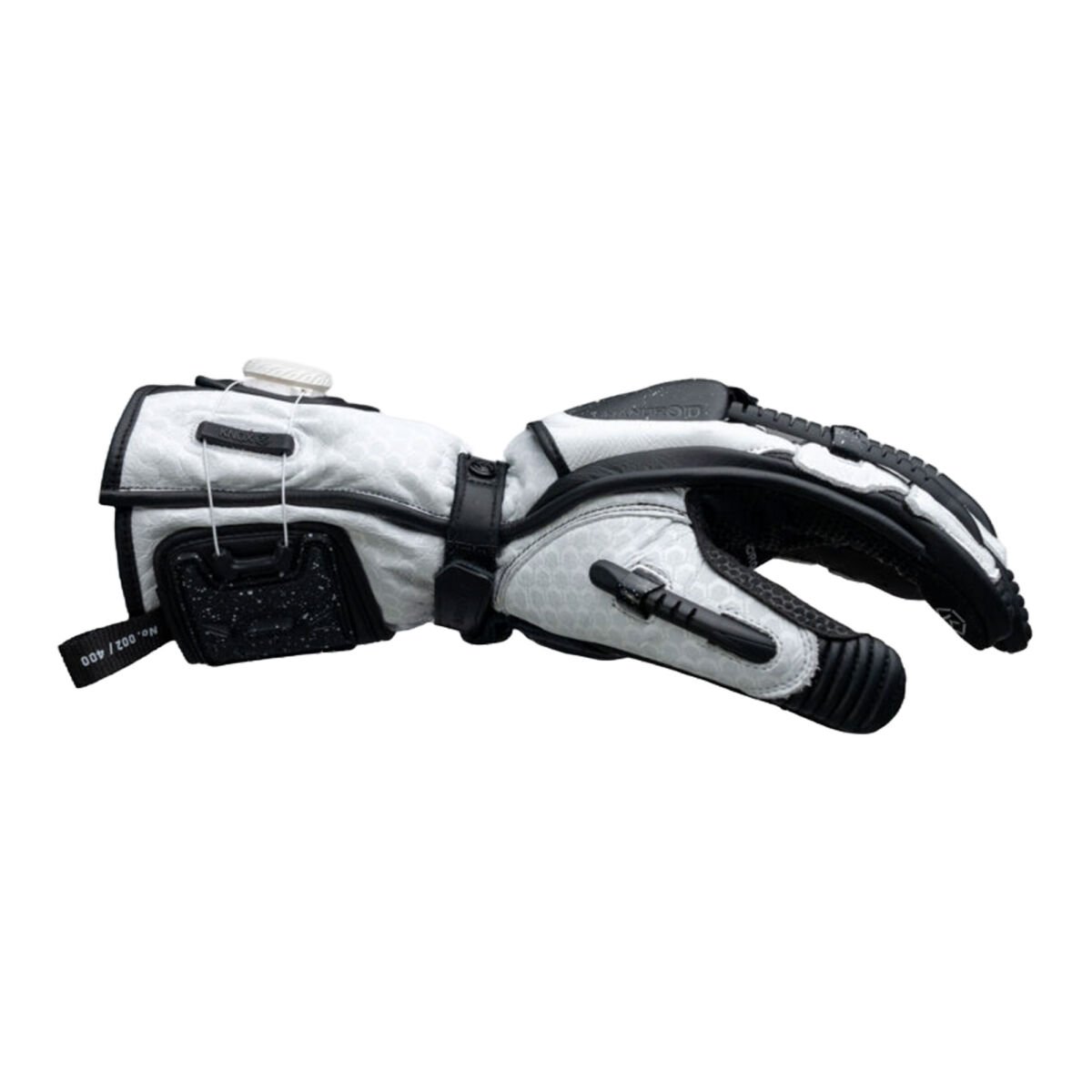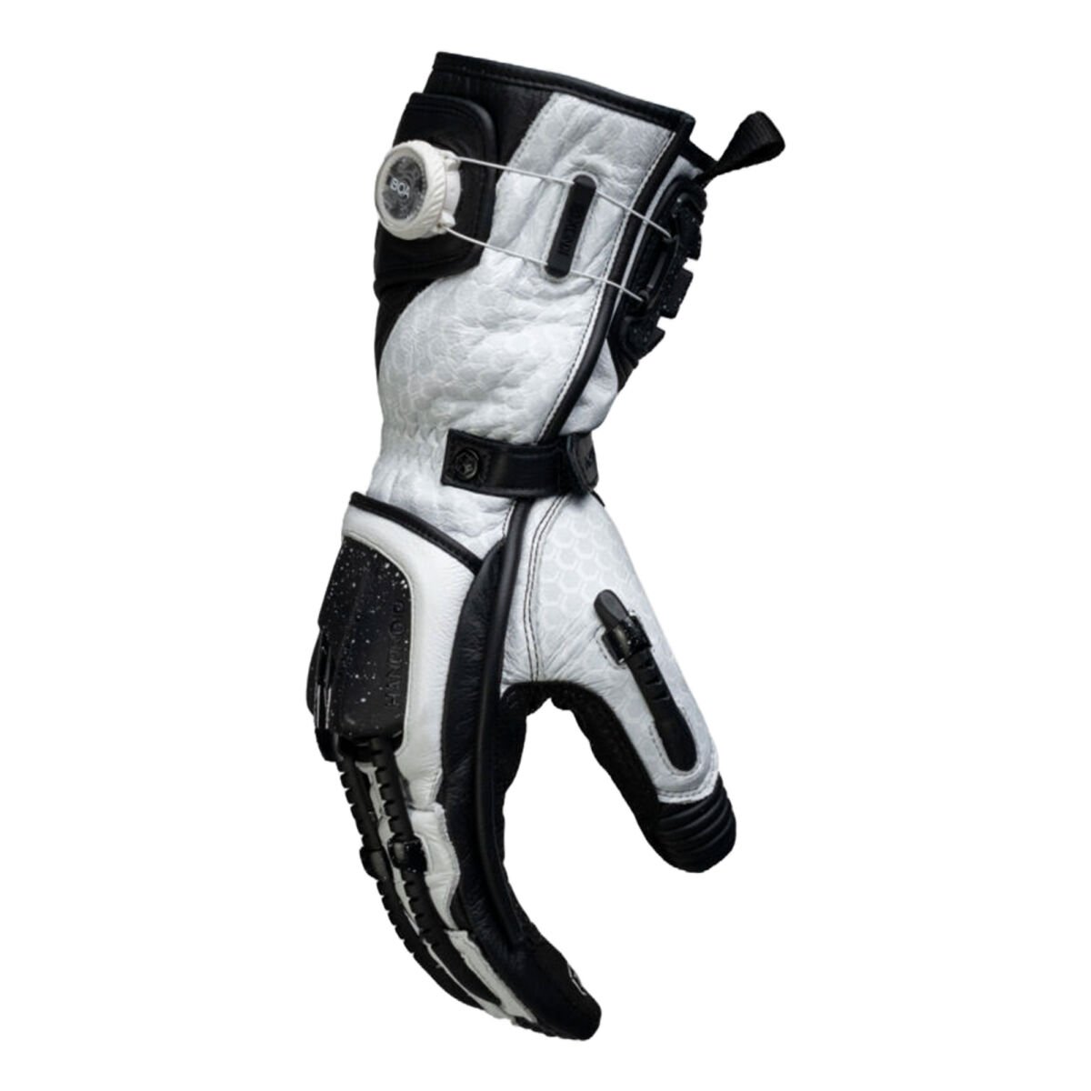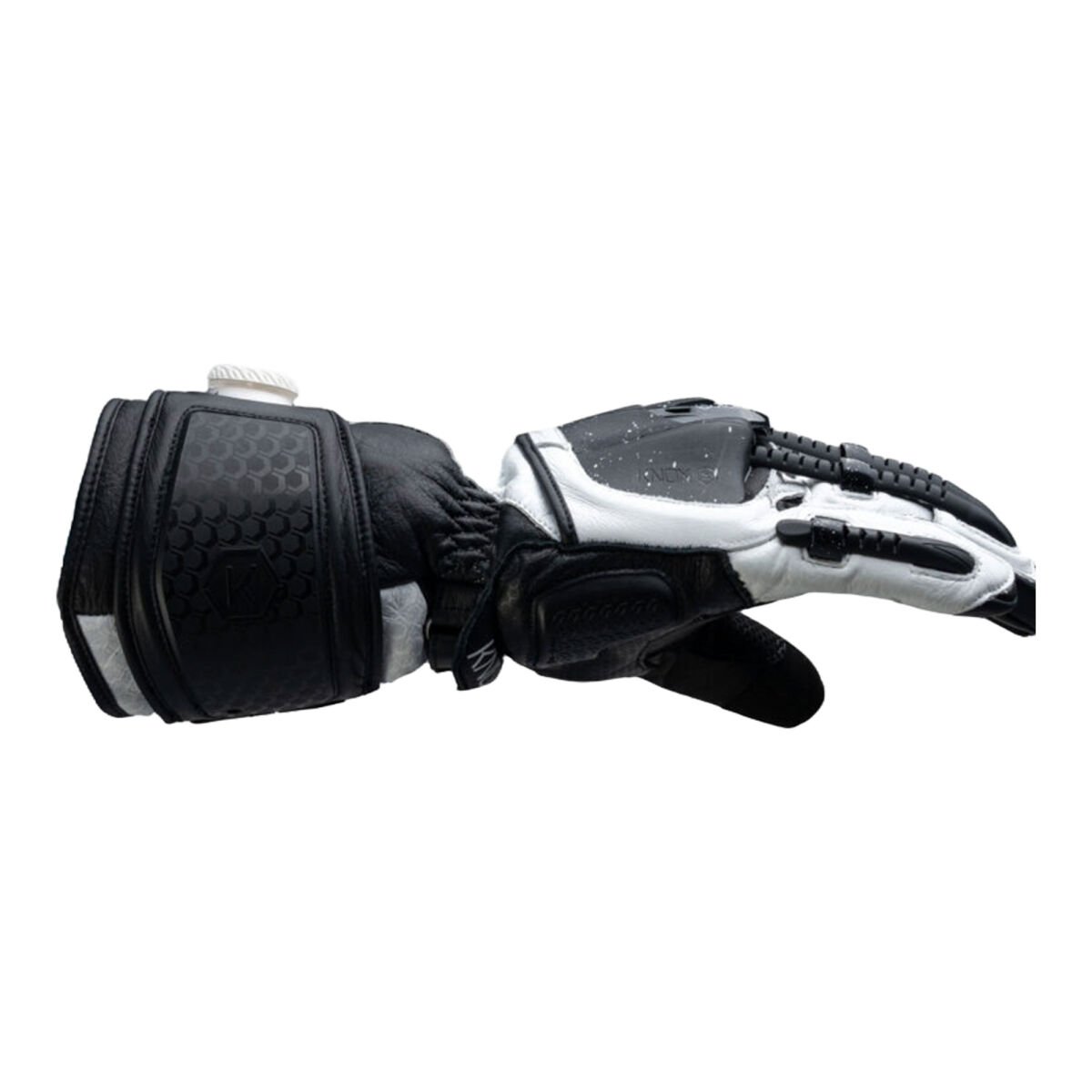 Yeni BOA bilek kapatma sistemi, Knox markasına özel patentli bir tasarımdır ve sürücülerin mikro ayarlanabilir BOA kadranı ile uyumu ayarlamasına olanak tanır. Knox Skafoid Koruma Sistemi (SPS), daha fazla darbe emilimi için Mikro Kilit içerir ve maksimum koruma için elin kenarlarını kaplar. Avuç içi, olağanüstü güç ve his sunan, etik kaynaklardan elde edilen 0,8 mm kanguru derisinden yapılmıştır. Eldivenin geri kalanı tambur boyalı dana derisinden yapılmıştır.