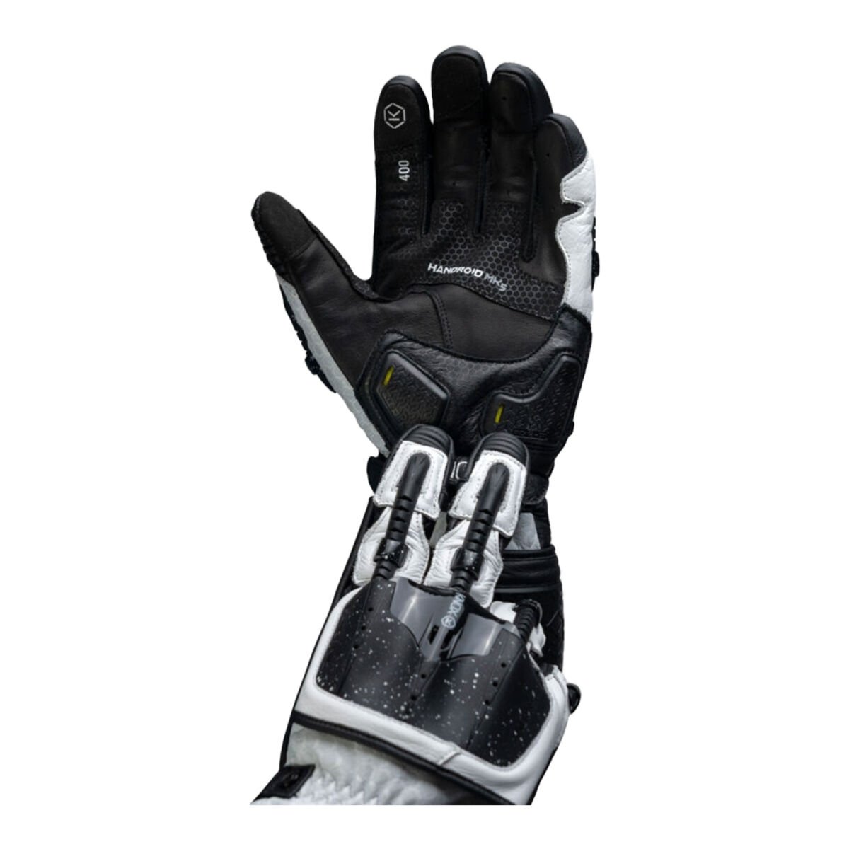 Yeni Handroid MK5, popüler All Black de dahil olmak üzere üç cesur renkte çağdaş altıgen deri tasarımına sahiptir. Eldiven, şık görünümünün yanı sıra önemli işlevsel iyileştirmelerden de geçmiştir. Daha fazla güç, aşınma direnci ve darbe koruması için şık, tek taraflı cilalı LDPE bilek ile değiştirildi. Bu tasarım, kontrollerdeki el becerisini ve esnekliği artırır ve daha rahat bir uyum sunar.