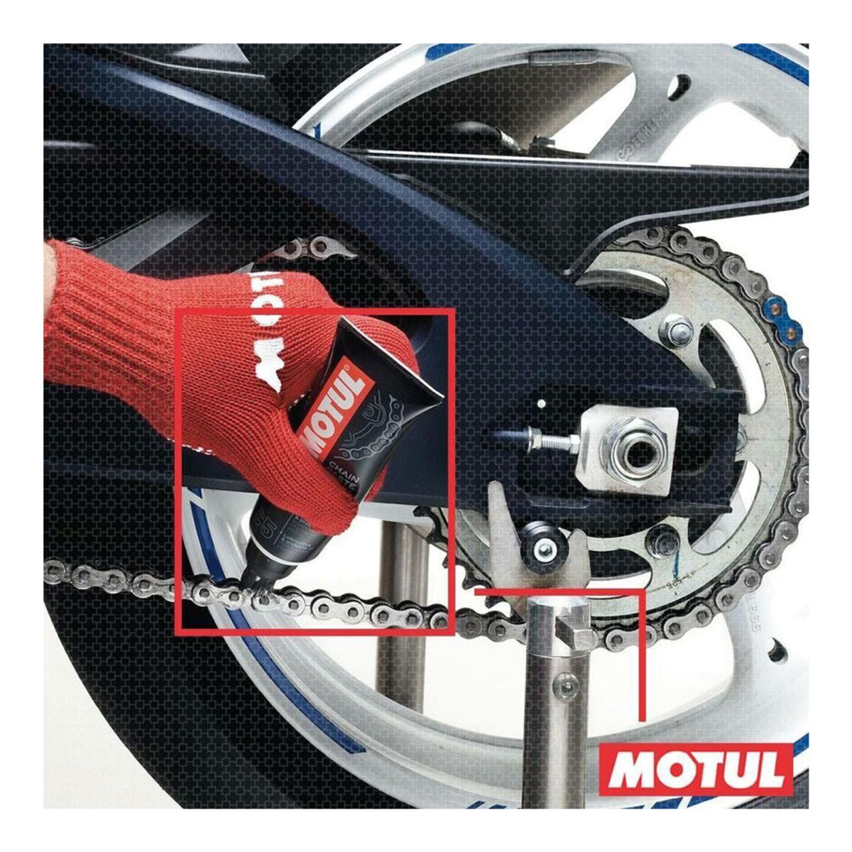 Çok hızlı motosikletler için özellikle önerilir: MOTUL CHAIN PASTE, yüksek hızlarda ve yüksek devirlerde bile zincire yapışır. Her türlü yol motosikleti ve go-kart için kullanıma uygundur.
