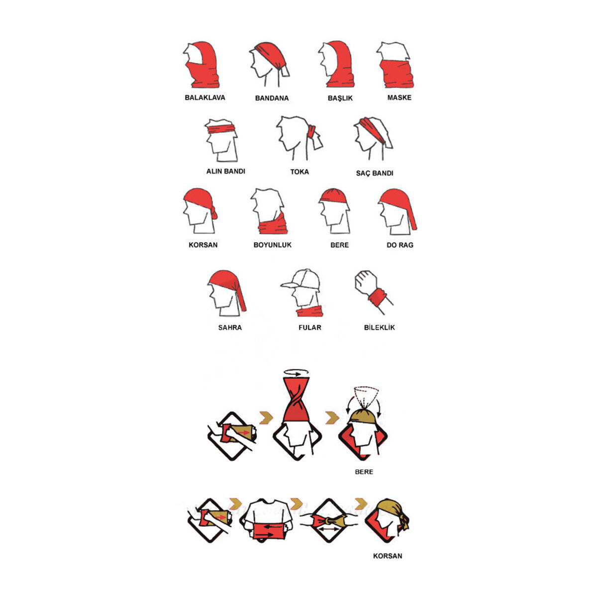 Zorlu şartlarda doğa koşullarına uyum sağlamanıza yardımcı, UV ışınların, sıcağın, soğuğun, bakterilerin, tozun, mikropların etkilerine karşı koruyucu olarak veya günlük hayatınızda aksesuar amaçlı kullanabileceğiniz, polygiene ve thermocool özellikleri taşıyan bir ekipmandır.