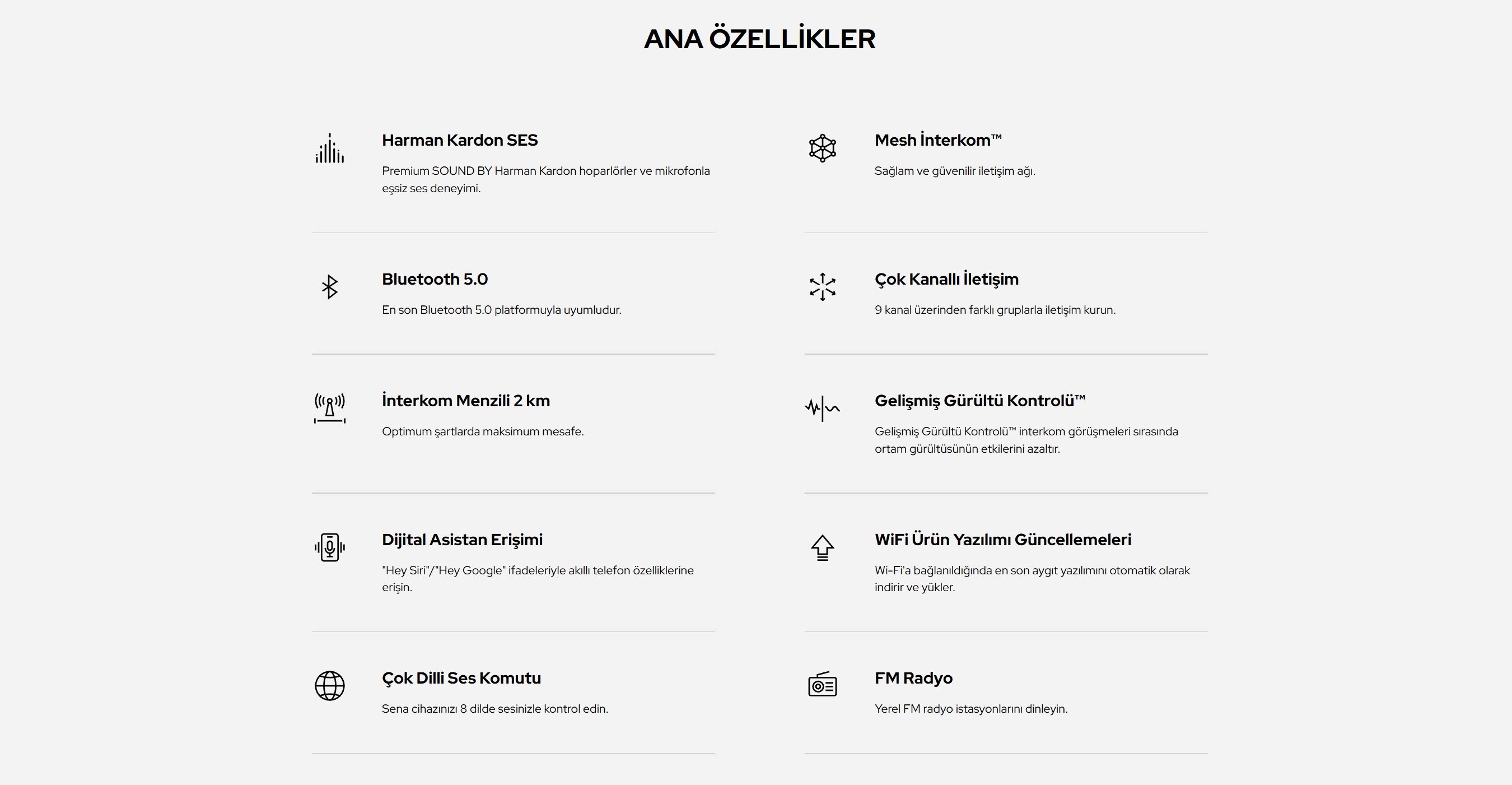 • Mesh Intercom™ Teknolojisi: Kolay, güçlü ve kesintisiz bağlantı, yüksek kullanıcı kapasitesi, daha geniş menzil, veri hızı ve güvenilirliği, ses netliği.