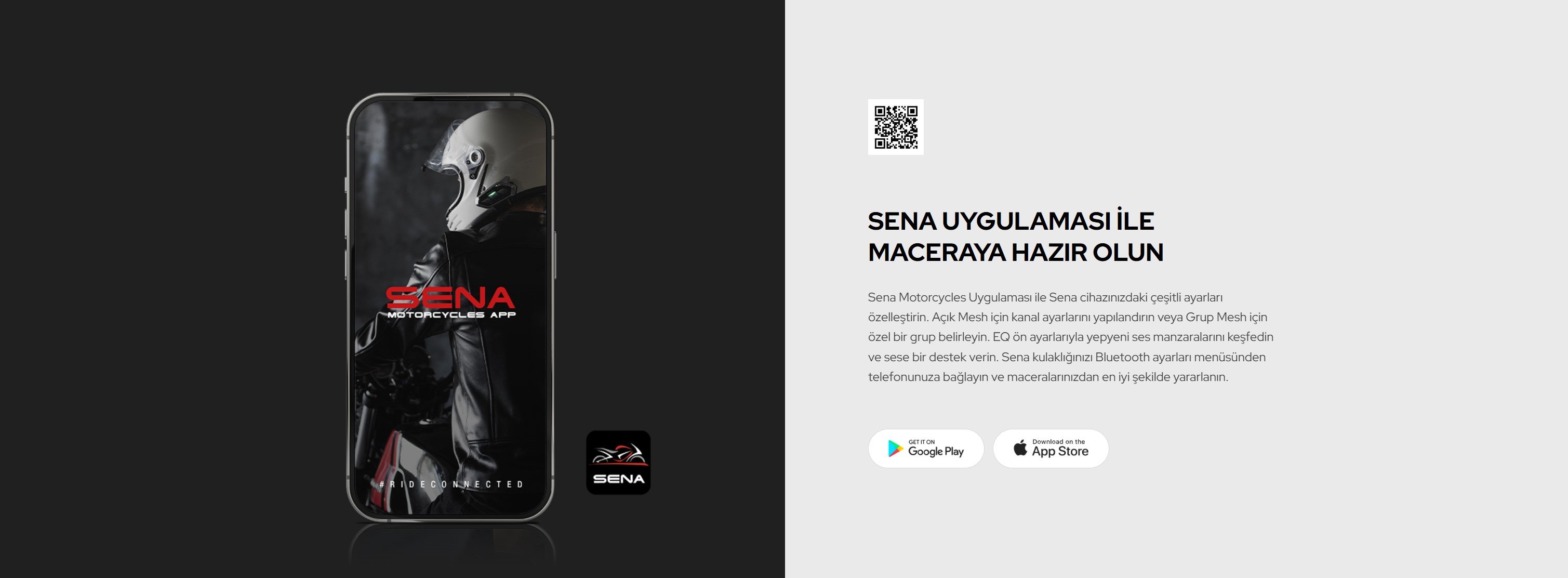 • Sena Motorcycles App ve QR kod kolaylığını yaşayın. Cihazlarınızı anında eşleştirin ve yola çıkın!