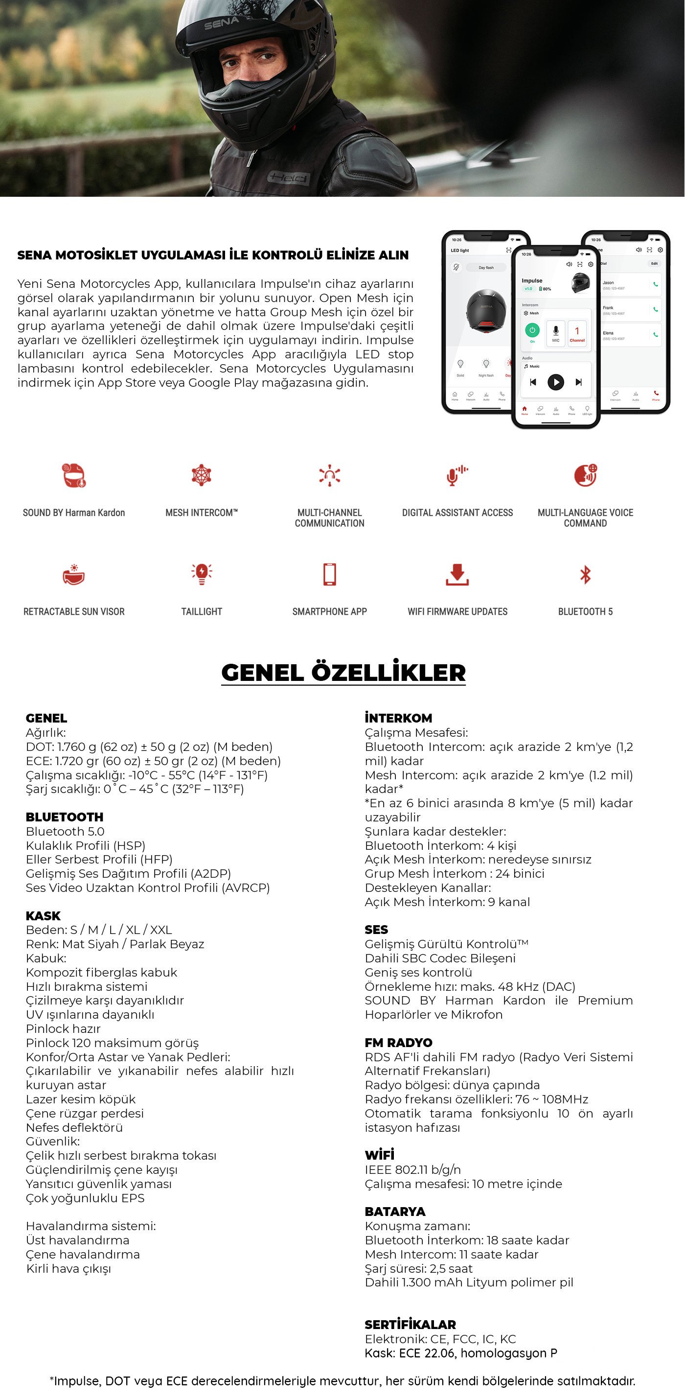 Sena Impulse Akıllı Çene Açılabilir Motosiklet Kaskı 2206 Mat Siyah