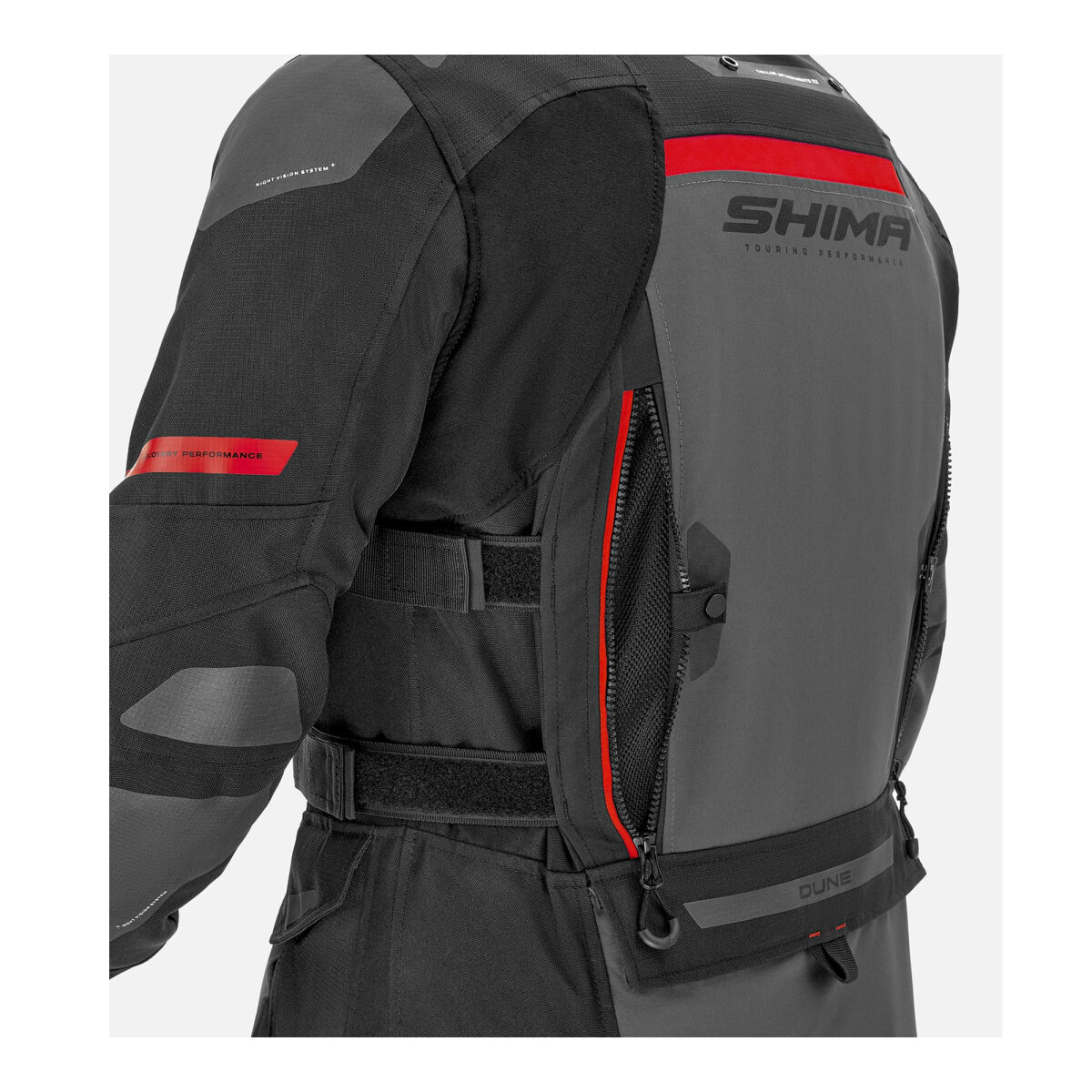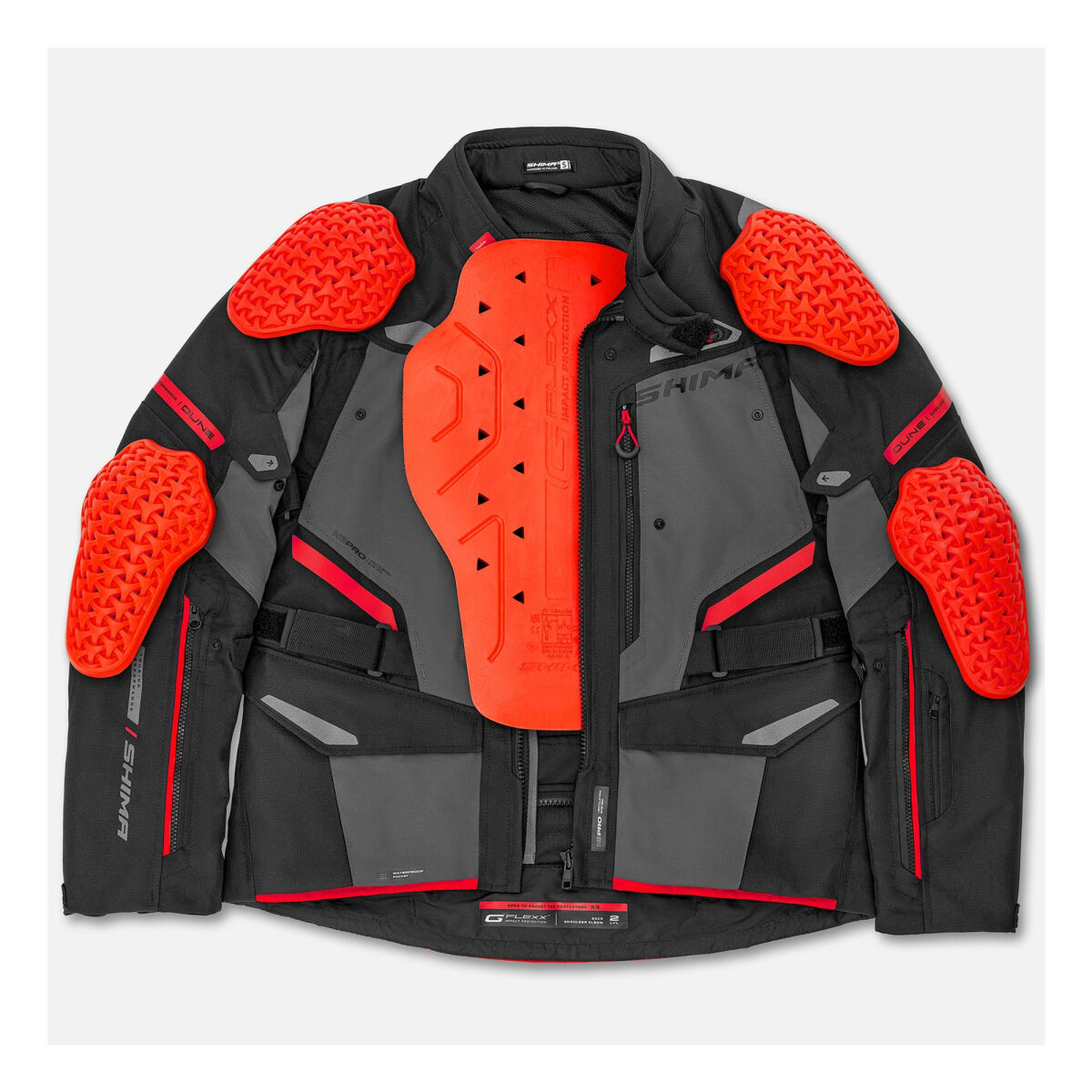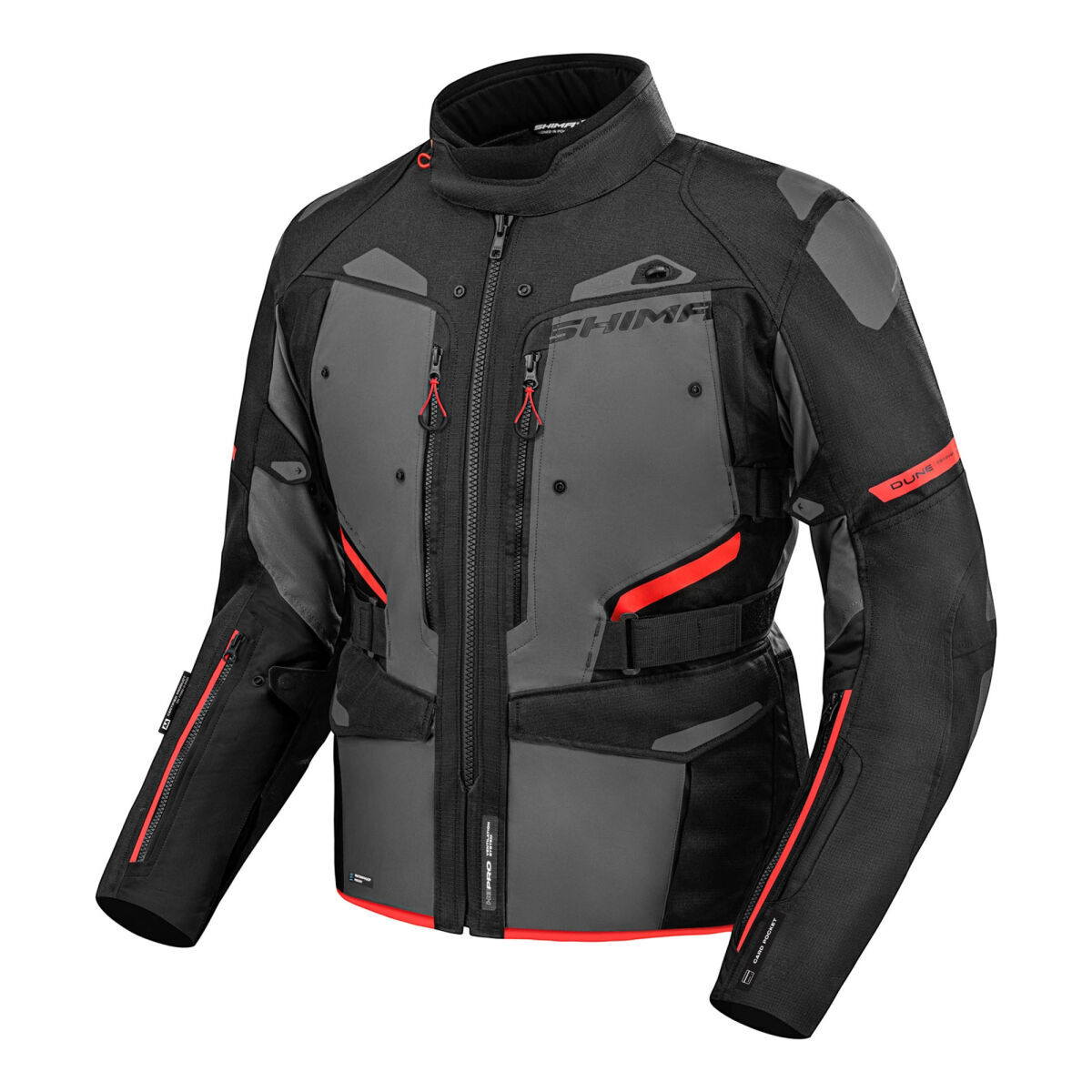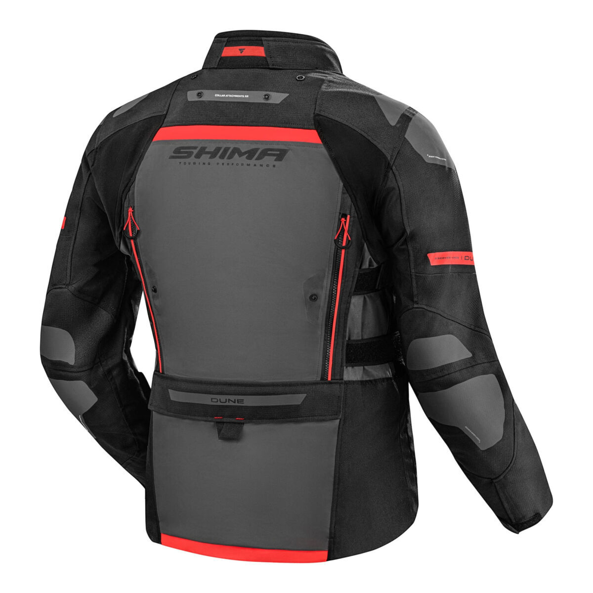 SHIMA DUNE, güvenliği ve konforu pratik çözümlerle birleştiren bir touring montudur. Ön kısımdaki su geçirmez kargo cepleri ve arka taraftaki geniş kargo cebi, gerekli tüm aksesuarlar için yeterli alan sunar.