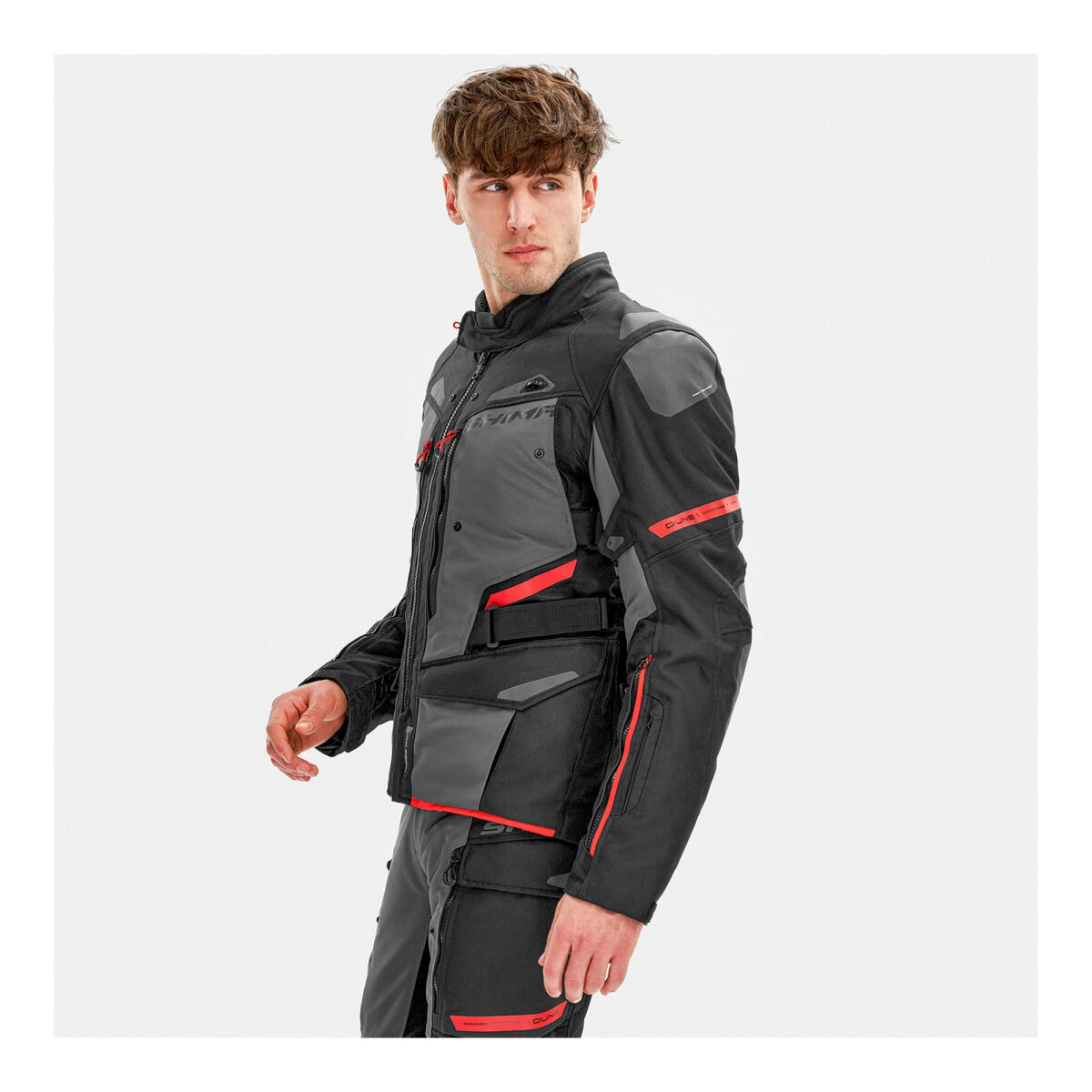SHIMA DUNE montu, üç katmanlı yapısı, gelişmiş havalandırma sistemi ve ayarlanabilir özellikleriyle her türlü hava koşulunda motosiklet yolculukları için mükemmel şekilde tasarlanmış çok yönlü bir touring montudur.