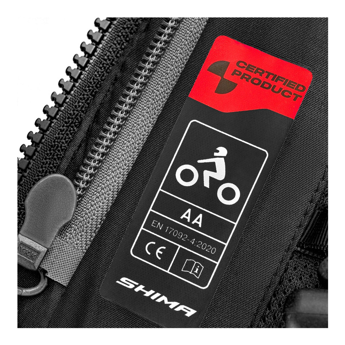 SHIMA DUNE montu, AA düzeyinde güvenlik sertifikasına sahiptir ve bu sayede uzun ve zorlu yolculuklarda maksimum koruma sunar.