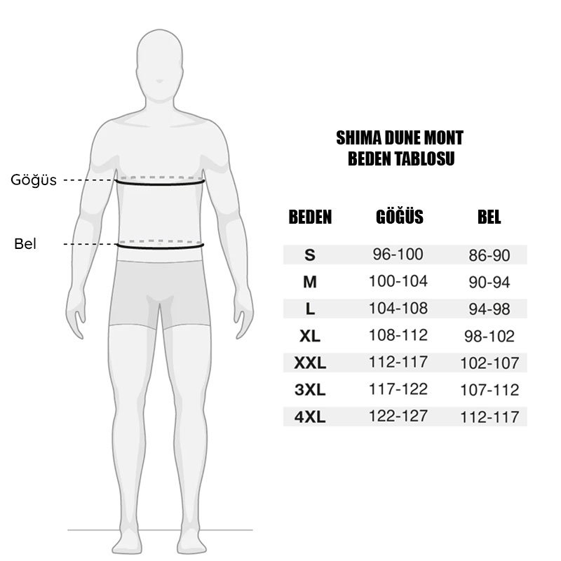 SHIMA DUNE montu, konforunuz ön planda tutularak tasarlanmıştır. Esnek yapılı kumaş panelleri sayesinde tam hareket özgürlüğü sunar.