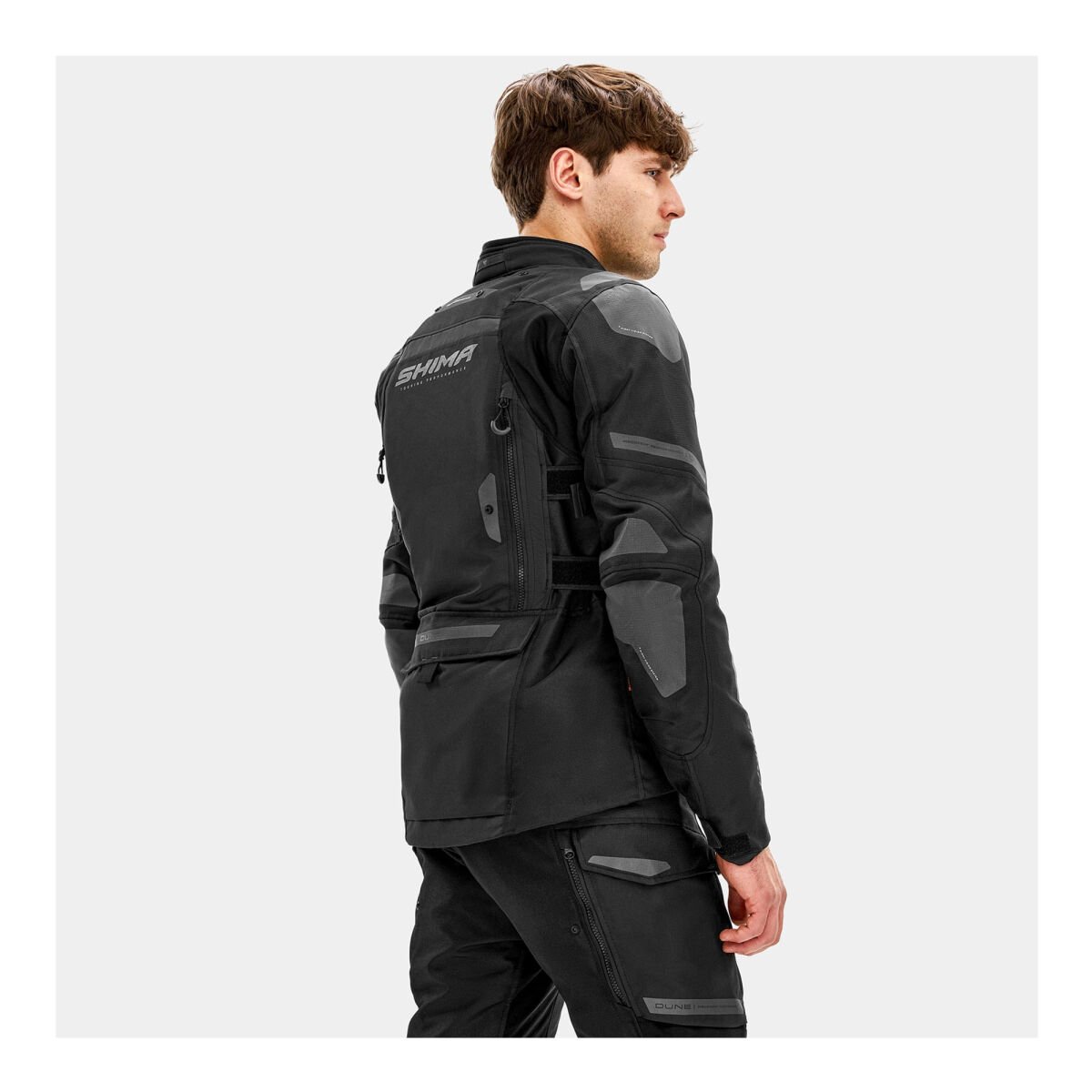SHIMA DUNE, güvenliği ve konforu pratik çözümlerle birleştiren bir touring montudur. Ön kısımdaki su geçirmez kargo cepleri ve arka taraftaki geniş kargo cebi, gerekli tüm aksesuarlar için yeterli alan sunar.