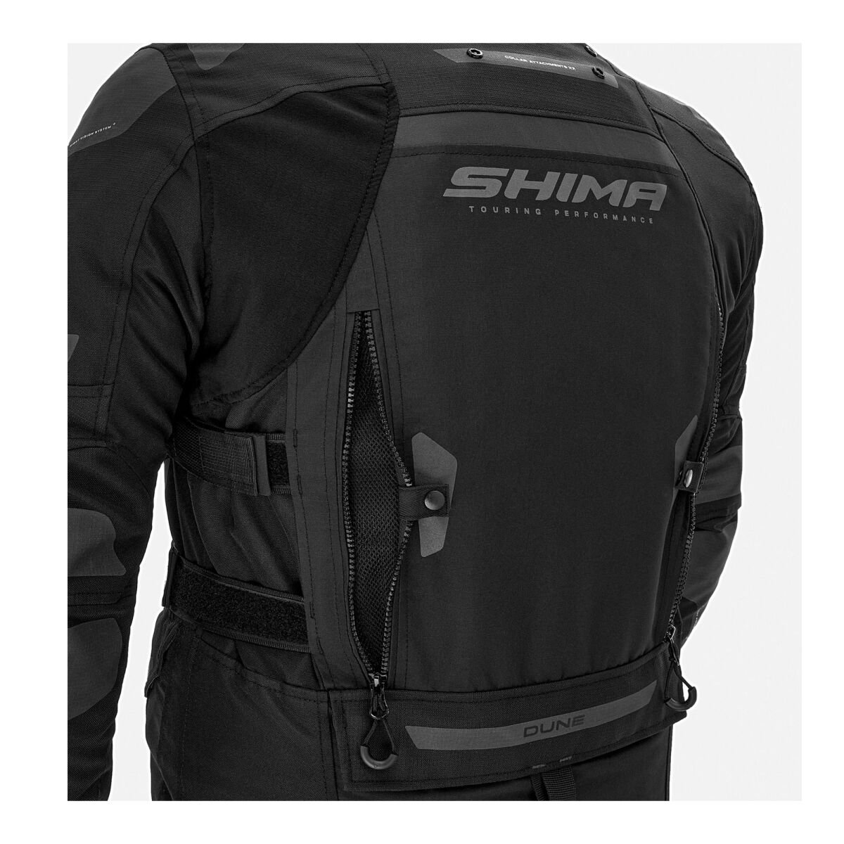 SHIMA DUNE montu, üç katmanlı yapısı, gelişmiş havalandırma sistemi ve ayarlanabilir özellikleriyle her türlü hava koşulunda motosiklet yolculukları için mükemmel şekilde tasarlanmış çok yönlü bir touring montudur.