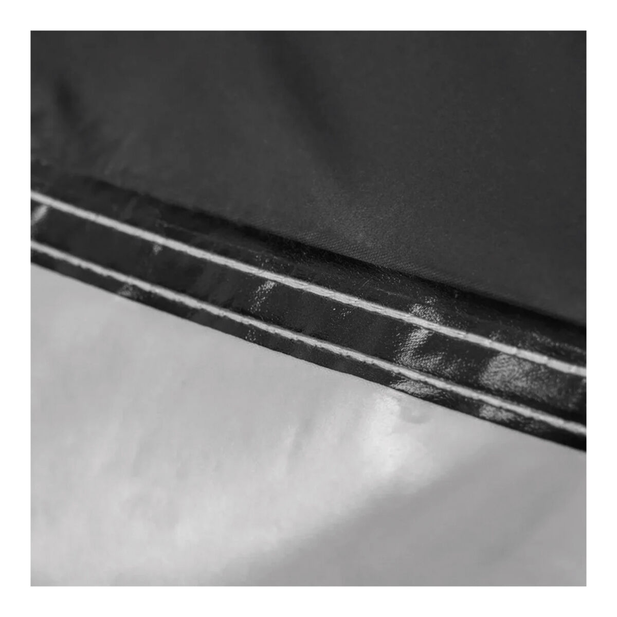 Alt kısmında bulunan elastik bant ve ayarlanabilir sabitleme kayışı sayesinde örtüyü takmak hızlı ve kolaydır. Ayrıca güçlü rüzgârlarda bile yerinden çıkmadan güvenli şekilde sabit kalır.
