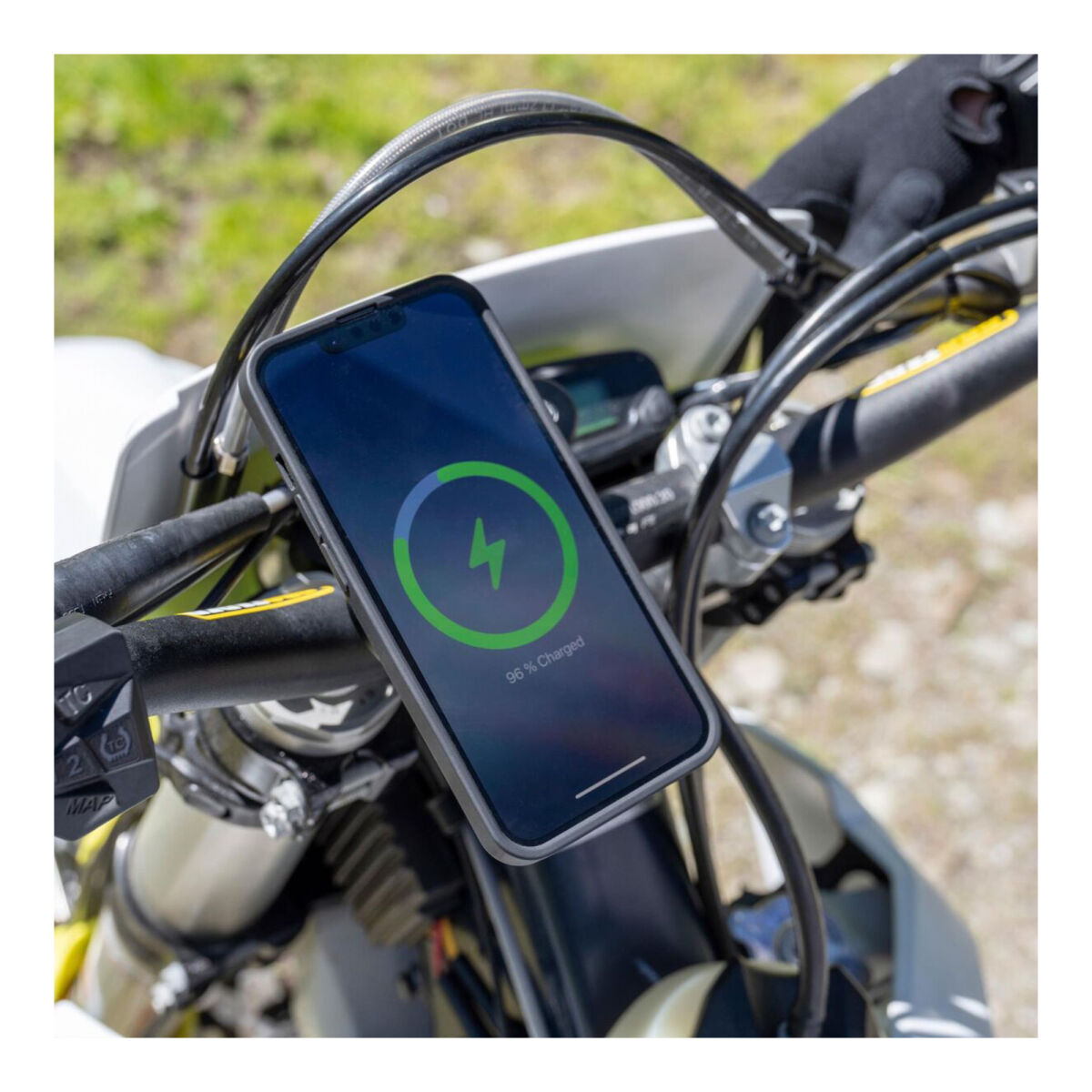 SPC+ Telefon Kılıfı için yenilikçi titreşim sönümleyici ve hava koşullarına dayanıklı endüktif (kablosuz) şarj cihazı. Titreşimde %60'a varan azalma.